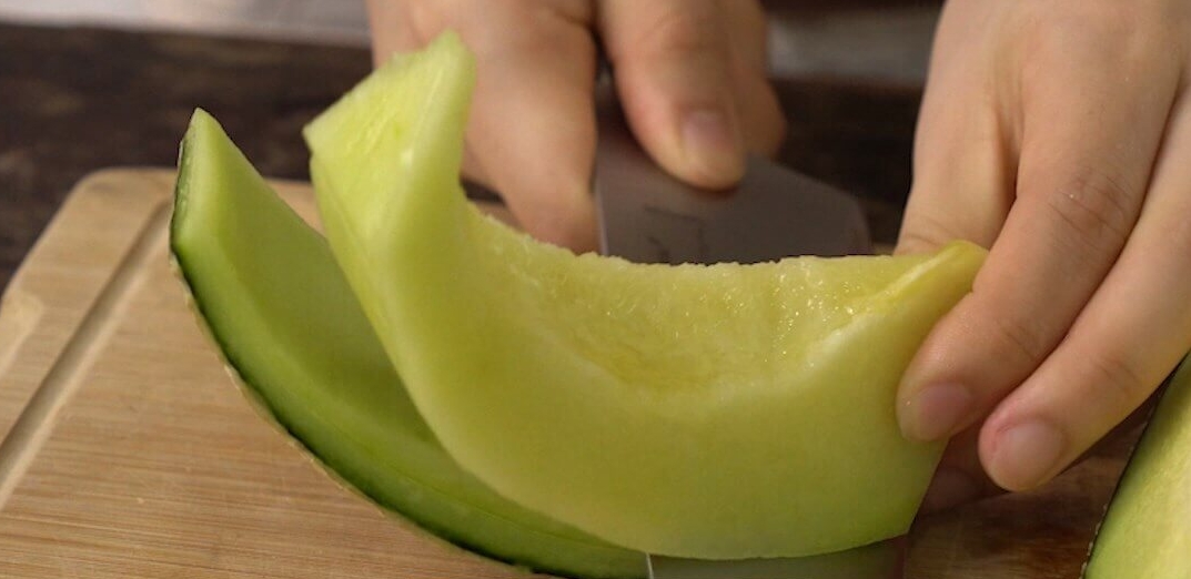 TIP → 멜론은 껍질 부분에 가깝게 자를수록 딱딱한 부위의 비율이 증가해 맛이 떨어지며 약간 쓴맛이 날 수 있어요. 너무 바짝 자르지 않아야 더욱 달콤하게 드실 수 있습니다.