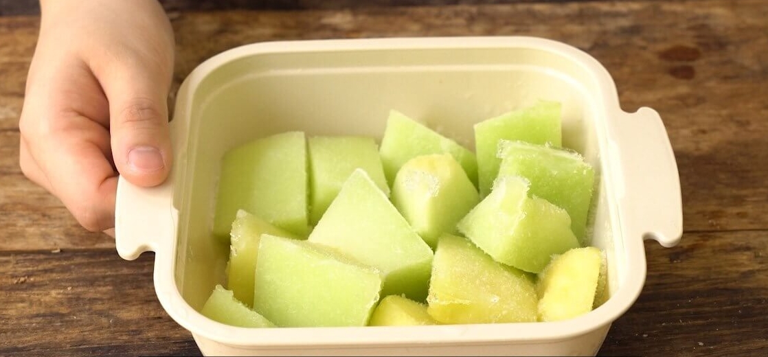시중에 냉동 멜론이 판매되기도 하지만, 수분이 많은 멜론을 얼린 후에 해동하게 되면 물러지며, 당도 또한 떨어지므로 갈아먹는 용도가 아니면 피해주세요.