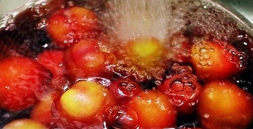 하나하나 문지른 자두는 찬물에 5분간 담가두시고 자두를 문지를 때 너무 세게 문지르면 금방 물러지니 주의하세요.