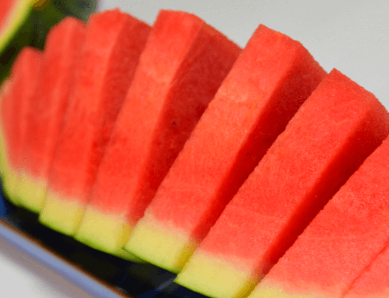 **3배체 교배 기술**로 만들어진 수박입니다.