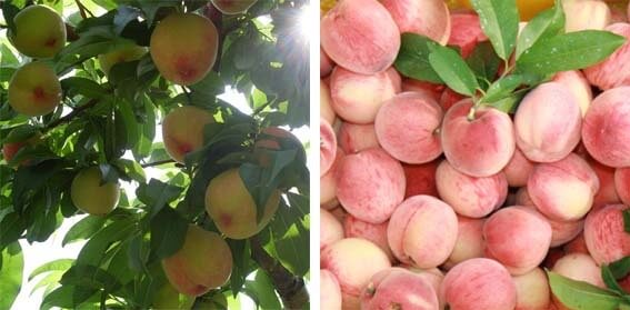 황도 복숭아 : 털이 있으며 속살이 황색인 복숭아