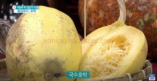국수 호박을 삶게 되면 안에 있던 호박 살이 불어나 국수 모양을 한 것처럼 보여 이름이 붙여지게 되었습니다.